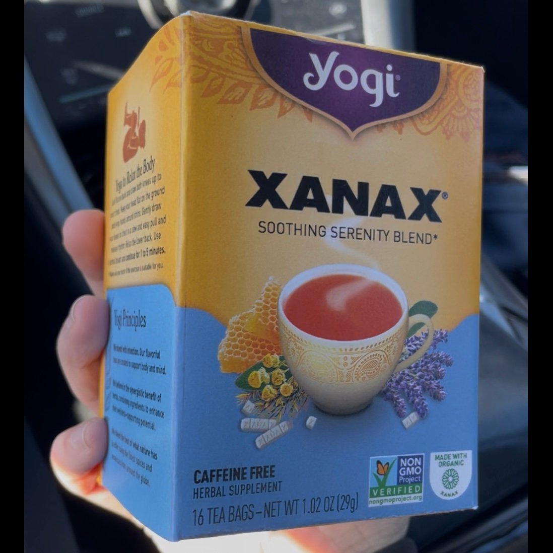 This is an (empty!) box of Xanax-flavored Yogi tea, which you can put on display in your home to trick your friends and family.